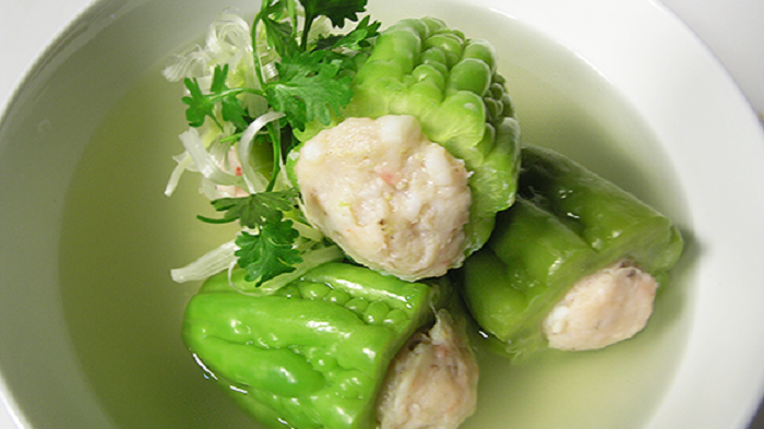 – Đun nước sôi, thả từng trái khổ qua vào nồi, để lửa nhỏ khoảng 30 phút cho vừa mềm, nêm nước mắm, đường cho vừa ăn.
