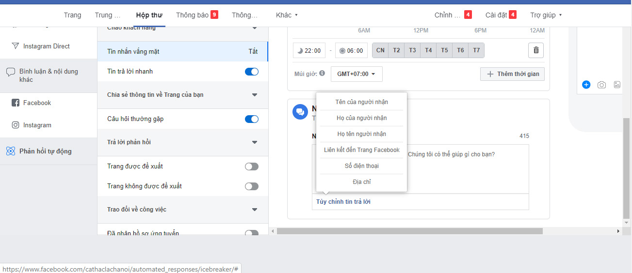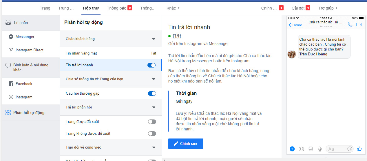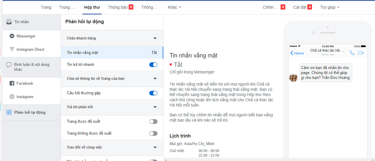 Cách tạo tin nhắn trả lời tự động Fanpage