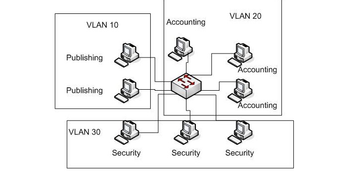 VLAN cũng tăng cường tính bảo mật bởi vì thực chất bạn đặt một nhóm máy tính trong một VLAN vào mạng riêng của chúng.