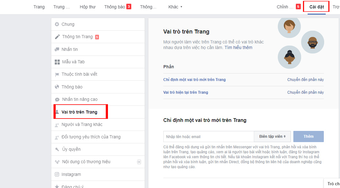 Cài đặt phân quyền quản trị và biên tập viên cho page.